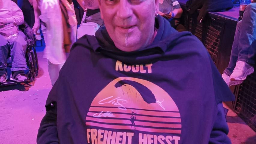 Gut gestärkt ging es zurück zu unserem Wünschewagen, der uns ins legendäre Riders Café brachte. Dort wurden wir schon vom Inhaber erwartet, denn für Rigo und seine Frau sowie uns Begleitende sollte der Einlass vor dem offiziellen Publikum stattfinden. Als Überraschung gab es nämlich noch ein kleines Zusammentreffen mit dem Sänger der Band Kuult! Die Texte der Lieder hatten die beiden durch die schwersten Zeiten gebracht, als unklar war, wie und ob Rigo auf der Intensivstation überleben würde. Es war ein großer Herzenswunsch, gemeinsam das Konzert zu erleben, denn nach fast 30 Jahren Beziehung hatten sie noch nie ein Konzert gemeinsam besucht.