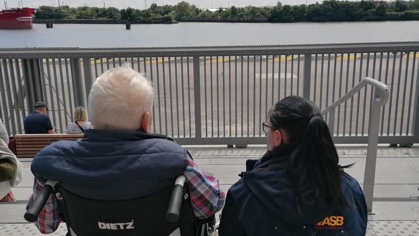 Am Donnerstag, 10.07.25, starteten wir Wunscherfüller, Malte und Mary, Richtung Geesthacht. Dort warteten unser Fahrgast und eine Mitarbeiterin des Hospizes auf uns. Nachdem wir im Hospiz ankamen, wurden wir von Shari, der Begleitung des Fahrgastes, empfangen. Sie führte uns in das Zimmer des Fahrgastes. Die Begrüßung war freundlich und direkt: "Nennt mich HG, das ist kürzer als Hans-Günther." Wir stellten uns ebenfalls vor und gingen dann mit HG und Shari zum Wünschewagen. Nachdem jeder seinen Platz eingenommen hatte, fuhren wir nach Hamburg.