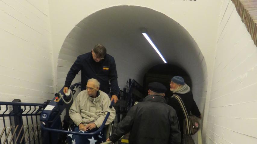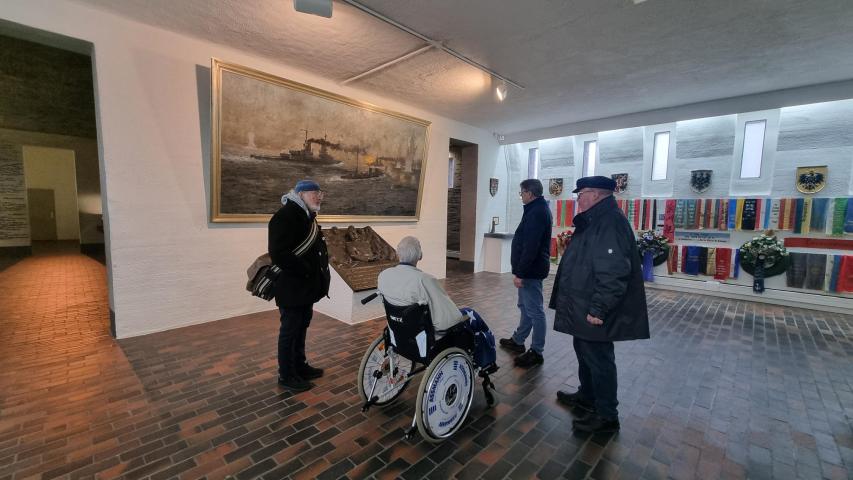 Geplant war ein Rundgang durch das U-Boot, den Turm, die Museumshalle und die Gedenkhalle. Leider war der Fahrstuhl zur unterirdischen Gedenkhalle aufgrund von Personalmangel außer Betrieb. Doch wie durch ein kleines Wunder war zufällig ein dienstfreier Mitarbeiter vor Ort, der sich spontan bereit erklärte, den Fahrstuhl in Betrieb zu nehmen und uns zudem eine Führung durch alle Bereiche zu geben.