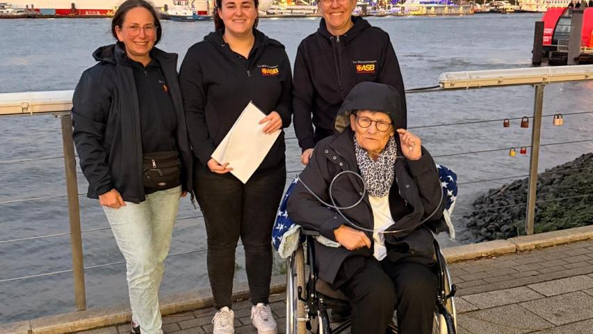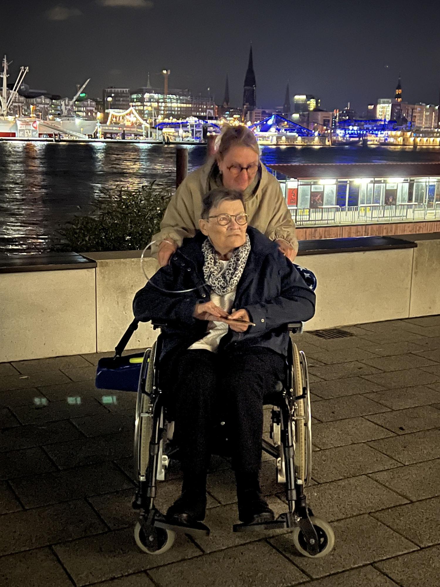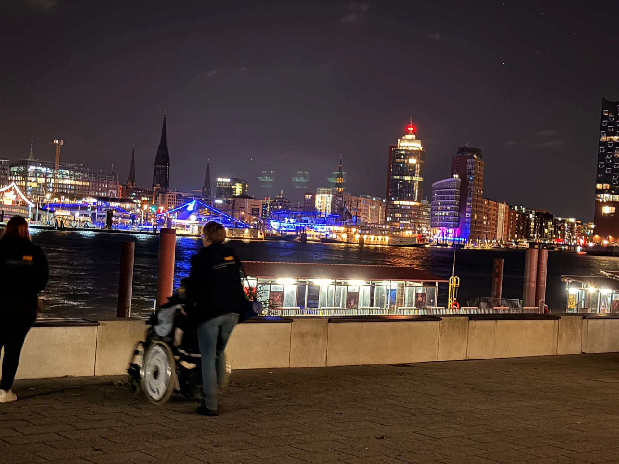 Mit Sturmtief Joshua im Nacken fuhren wir zum Albertinen-Hospiz nach Norderstedt, wo wir von unserer Fahrgästin Karin und ihrer Schwiegertochter Sylvia sehnsüchtig und aufgeregt erwartet wurden. Durch den typischen Hamburger Verkehr fuhren wir im Stop-and-go auf die andere Elbseite. Das Musical König der Löwen war angesagt. Wir waren recht früh da, sodass wir vor der Vorstellung noch einen kleinen Snack zu uns nehmen konnten. Karin genoss ihr Eis, dann wurden wir durch den Nebeneingang zu unseren Plätzen geführt.