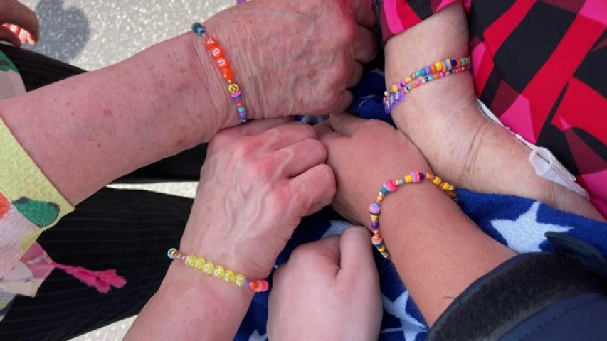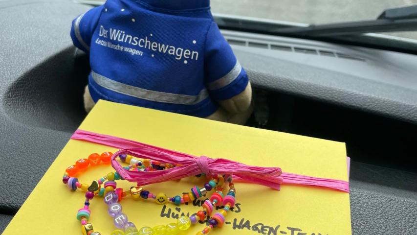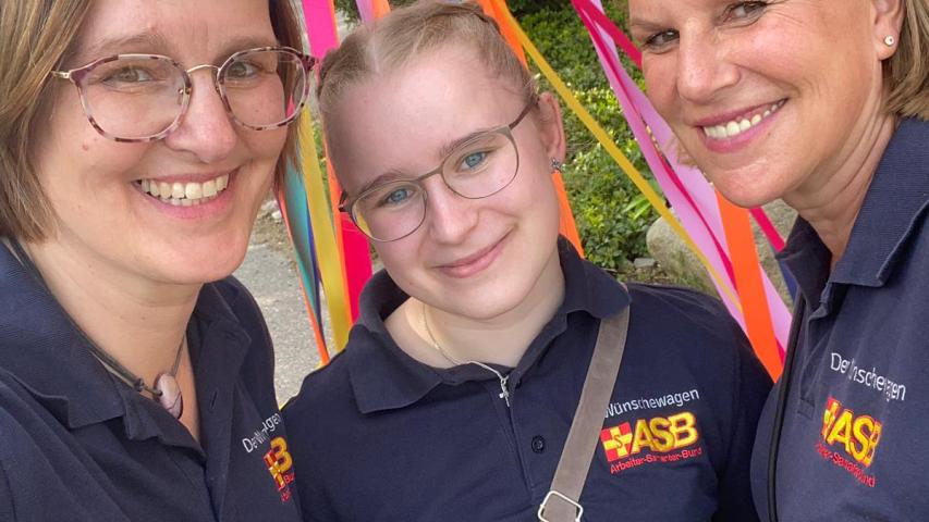 Nur ein kleiner Moment, dann werden Nicole, die den Wünschewagen fährt und Lara als Beifahrerin (die Namensgleichheit zu Braut und Enkelin ist zufällig) Ohrenzeuginnen, als wir hinten im Wagen beginnen zu singen. „Marmor, Stein und Eisen bricht, aber unsere Liebe nicht“, wie passend, für den heutigen Anlass.