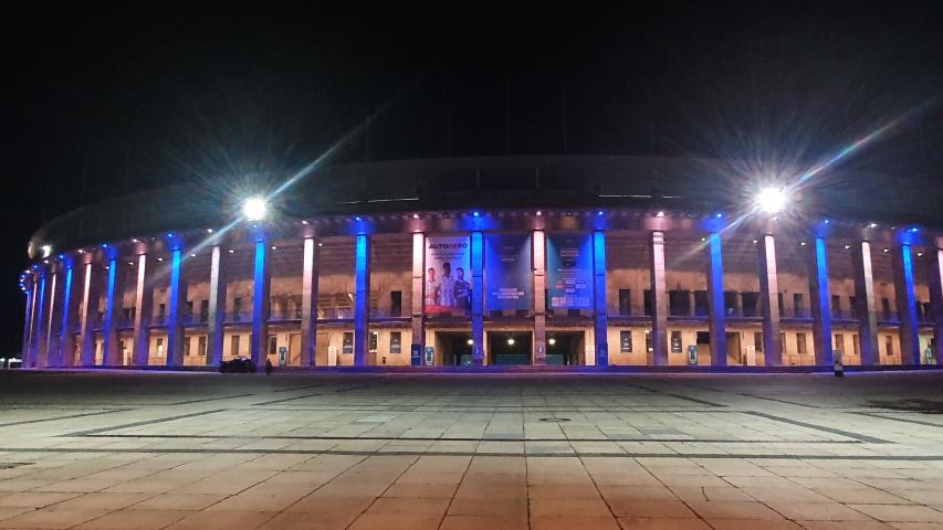 Den frühen Abend verbrachten wir mit Bummeln durch Berlin, Besuch des Brandenburger Tores, Souvenirkäufen und endeten schließlich im Hauptbahnhof, wo uns Nicks Vater zum Abendessen eingeladen hat. Der Besuch des Olympiastadions war für Sonntag geplant, aber wie schön es wohl im Dunkeln aussehen würde, wenn es beleuchtet ist? Um diese Frage beantworten zu können, half nur eins - wir machten uns auf den Weg dorthin. Einige S-Bahn-Stationen weiter erreichten wir das Olympiastadion, es war wunderschön beleuchtet und strahlte mit Nicks Augen um die Wette. Mit dem Wissen und dem Ziel vor Augen, dass wir am Sonntag auch das Innere des Stadions erkunden können, ging es zurück ins Hotel.