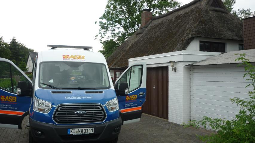 Nachdem ich mit meinem Kollegen Florian Stöver den Wünschewagen gecheckt hatte, ging es gegen 14 Uhr los nach Neumünster. Meine Freude war groß, denn ich durfte das erste Mal eine Wunschfahrt begleiten. In Neumünster sammelten wir zunächst unsere erfahrende Rettungssanitäterin Belinda Hüsemann ein und schauten dann noch einmal zusammen durch den Wagen. Dann ging es los zu Elias. Seine Mutter Susanne S. erwartete uns schon vor dem Haus und wies uns ein. Große Freude und Dankbarkeit standen ihr ins Gesicht geschrieben und die ersten Freudentränen kullerten. „Ohne den Wünschewagen könnten wir nicht in den Urlaub fahren!“, sagte Susanne und wischte sich eine Träne von der Wange. Bei der Begrüßung des 14-jährigen Elias herrschte große Freude, jedoch wurden wir direkt vor die Tatsache gestellt, dass wir mit der Trage nicht durch die verwinkelte Wohnung kommen. Belinda funktionierte die Bettdecke des Wünschewagens zum Tragetuch um und wir konnten Elias so raus aus der Wohnung direkt zur Trage bringen. Für Elias war das alles sehr anstrengend, aber als seine Mutter einen USB-Stick zückte, um im Wünschewagen seine Lieblingsmusik abzuspielen, war die Welt wieder in Ordnung.