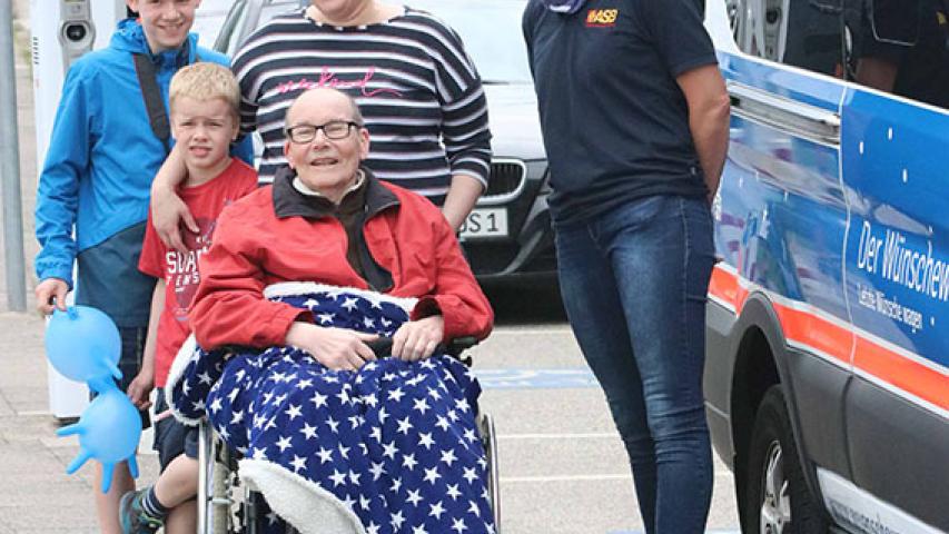 Der schwerkranke 78-Jährige genoss das Zusammensein mit seiner Familie in vollen Zügen, wurde immer fröhlicher und war am Ende richtig zum Schäkern aufgelegt. Auch für unsere Wunscherfüller Ute Uhrbrook und Helmut Hollstein, die ein dickes Lob für den freundlichen und unkomplizierten Umgang erhielten, war es schön, das innige Miteinander in dieser Familie zu erleben. Viel zu schnell verging die Zeit und die Rückfahrt zum Lübecker Rickers-Kock-Haus musste angetreten werden. Ein wunderschöner Tag und bleibende Erinnerungen für alle Beteiligten.
