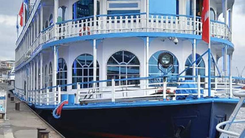 Am Hamburger Hafen legte der majestätische Schaufelraddampfer Louisiana Star an, und trotz der Schnelllebigkeit, die von Frau D. nicht unbemerkt geblieben war, wo alles erneuert wird, die Straßen und die Stadt Hamburg sich in kürzester Zeit so verändert haben, tauchten wir plötzlich in eine nostalgische Umgebung auf dem Schiff ein. Große Kerzenleuchter, tiefrote Teppiche, Glanz und Glamour von vergangenen Zeiten erinnerten uns an den eigentlichen Sinn des Lebens.