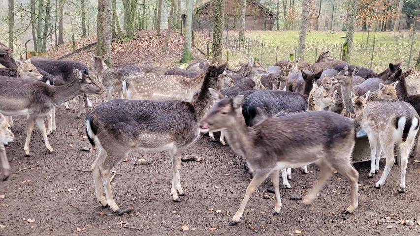 Einen Lageplan benötigten wir nicht, da sich Frau B. mit ihrer Familie hier so gut auskannte wie in ihrem eigenen Zuhause. Die Sorge, die Tiere könnten sich bei den geringen Temperaturen alle in ihren Hütten verkriechen, bestätigte sich nicht. Hochlandrinder, Ziegen, Rehe, Hängebauchschweine, sie alle schienen die Ruhe im wenig besuchten Park zu genießen und schauten interessiert, als wir näherkamen. Unter den wachsamen Augen von Frau B. durften die Enkelkinder dann noch zwei Packungen Tierfutter im Streichelgehege an die Ziegen verfüttern. Es war für uns wirklich schwer zu sagen, wer sich hier am meisten von allen freute.